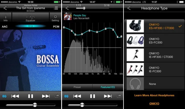 Onkyo je izdao nadogradnju (verzija 2.2.0) za svoj HF Player namijenjen iOS uređajima. On je standardni player glazbe, ali s puno većim mogućnostima kontrole zvuka putem linearnog FIR equalizera s čak 16.384 područja HD ugađanja.